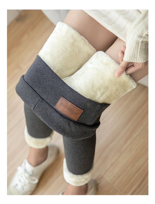 Black warm pants winter skinny thick velvet wool fleece girls leggings women Trousers Lambskin Cashmere Pants For Women leggings