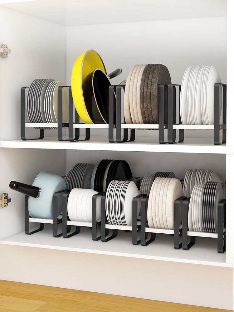 This Cabinet Shelves Storage Rack by segmoo is perfect for organizing your plates, bowls, and cups. Made of durable carbon steel, it features a modern and simple design with non-slip covers for protection. Available in both small and large sizes, this multifunctional rack is suitable for cross-border export and comes in a convenient carton for shipping.